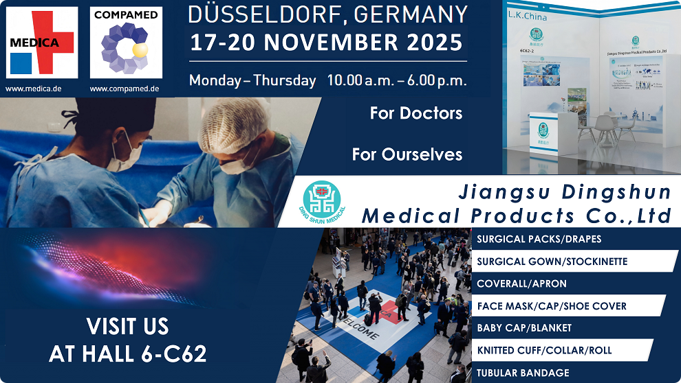 شرکت محصولات پزشکی جیانگسو دینگشون که در سال 2002 تاسیس شد، متخصص در توسعه و تولید مواد مصرفی پزشکی یکبار مصرف است. Dingshun Medical با شروع با سرآستین های بافتنی، دامنه محصولات خود را برای پوشش انواع لوازم پزشکی مانند جوراب ساق بلند، بسته های جراحی و بانداژ .